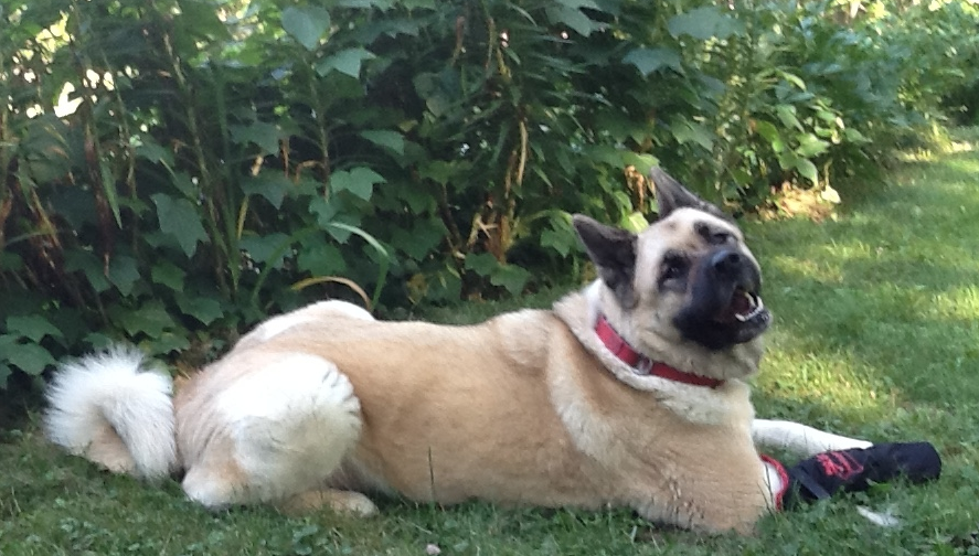 Update on Kiyo: She has a sprained foot. She’s bandaged, and has to have a waterproof boot put over her the splint every time she goes out. She’s on crate rest for a couple of weeks, then we re-evaluate. Here she is, sporting her Medi-paw.