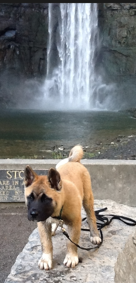 Over the weekend, Toka & I set out to hike to Taughannock Falls. It’s a short, cool, pretty walk to a lovely 215 foot waterfall. Since I’m aiming to get Toka’s Trail and Pack Dog titles, I thought the 1.5 mile round trip hike would be a great way to start adding to our mileage.
